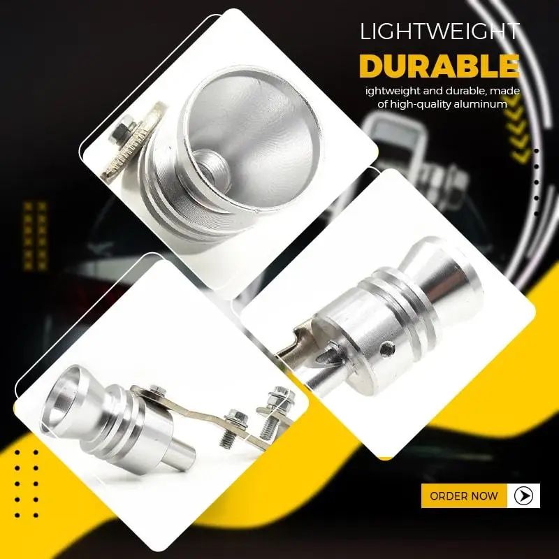 Avec notre sifflet d'échappement turbo, transformez le son sourd de votre échappement en un rugissement puissant qui fait tourner les têtes. Profitez du frisson d'un moteur sport sans avoir à dépenser d'énormes sommes d'argent, car il ajoute une touche unique à votre voiture et vous donne l'impression d'être un pilote professionnel à chaque accélération.